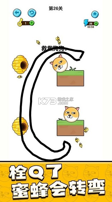 我的狗狗是在抖音上非常好玩非常火的一款益智休闲闯关游戏,其总体的玩法相当的有趣和独特,讲述的是一只可爱的小狗即将陷入危险,而玩家们需要通过画线的玩法拯救即将被蜜蜂蛰到的狗狗,整个的游戏过程特别考验玩家的脑洞,而且为了提高大家的可玩性,在这里更是设计了更多的关卡内容,有着各种类型的挑战等你解锁,你可以尝试更多的画线方式,总体的操作也十分简单,相信你最后将会成为最厉害的画线大师,可以说适合各个年龄段的玩家拿来休闲娱乐。还在等啥呢,现在赶快来下载我的狗狗游戏解锁超多酷炫的皮肤,帮助狗狗躲避蜜蜂的进攻,去实现你的终极目标吧。