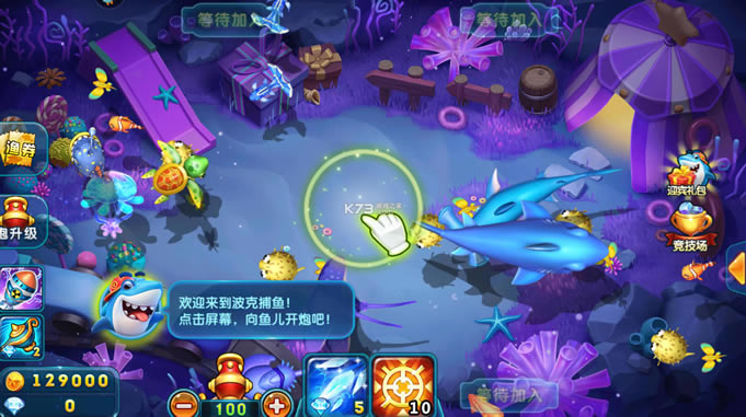 丰富的海洋鱼类自然游动,炫丽的海底场景完美呈现;多样化的渔炮等级,华丽的炮弹打击感;