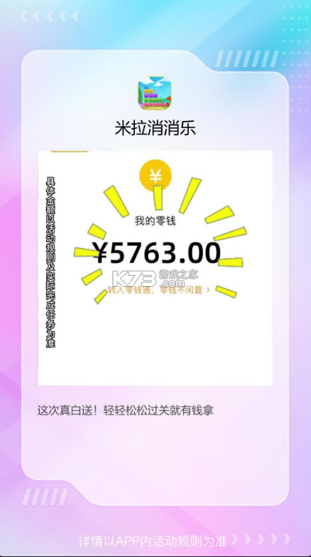 米拉消消乐是一款非常不错的消除赚钱游戏,大家都在用的米拉消消乐APP,快来试试你能领多少红包吧,这次真白送!轻轻松松过关就有钱拿。不绑卡,不实名,微信秒提现!