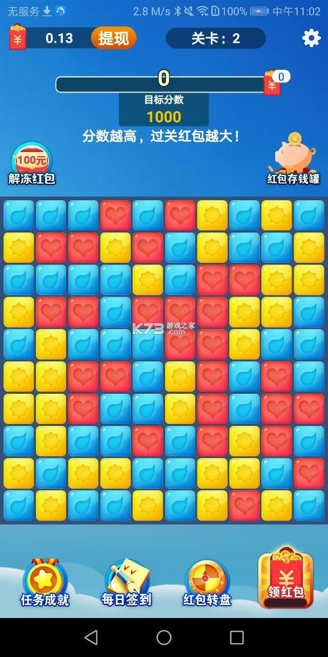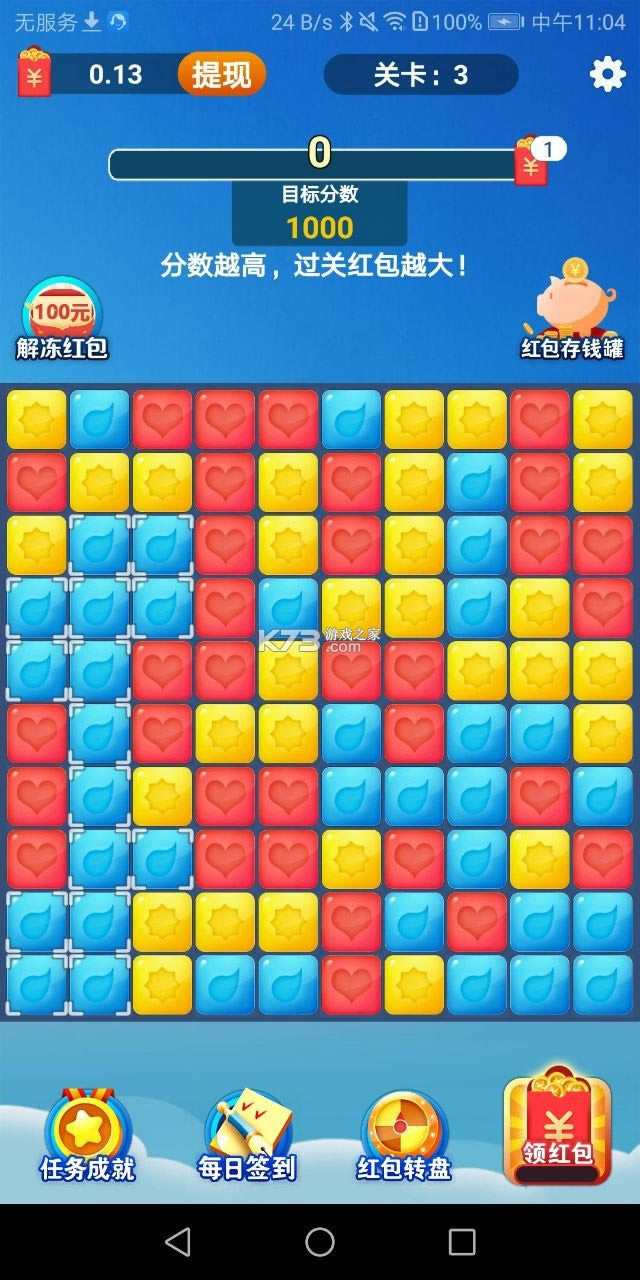1、通过完成消除任务或者是成就来解锁红包奖励,看看你的运气有多好吧!