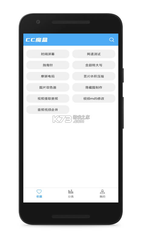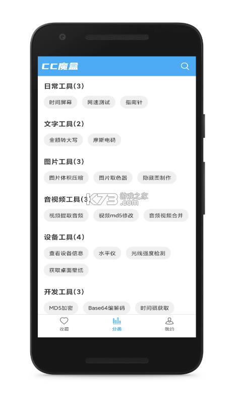 软件的界面设计十分简洁,除了工具还是工具,让用户可以享受不错的使用体验。软件的工具包括摩斯电码、图片取色器、图片体积压缩、网速测试等工具,大致可分为日常、文字、图片、音视频等工具分类,搜素方便,使用简单。