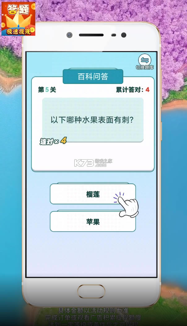 答对题目就有奖励领取的网赚游戏题目的种类也是多种多样的哦,玩家需要在根据题目选择出正确的答案,非常简单,就可以获得红包奖励,海量的题库实时更新,所有的题目都是日常知识,答题玩法也非常的丰富,从生活知识到专业问题应有尽有