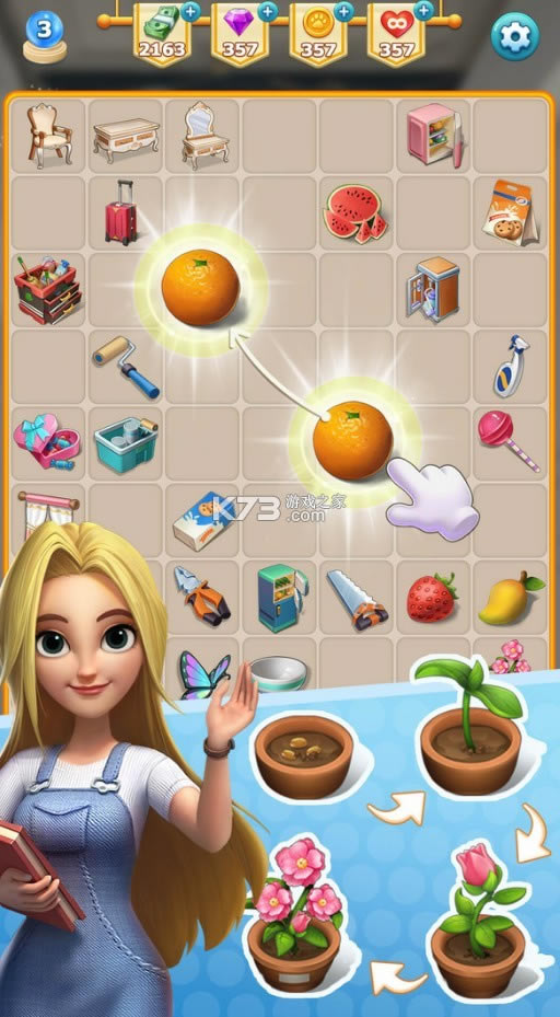甜点消消是一款玩法简单画风清新容易上手的家装消除游戏,在游戏里你将扮演设计师凯洛琳,帮助好友对房子进行装修。 动动手指对材料进行合成,解决难关开启星星宝箱和宝藏袋,收集宝贵的钱币和道具,交付任务获取资源,通过装修推动主线剧情