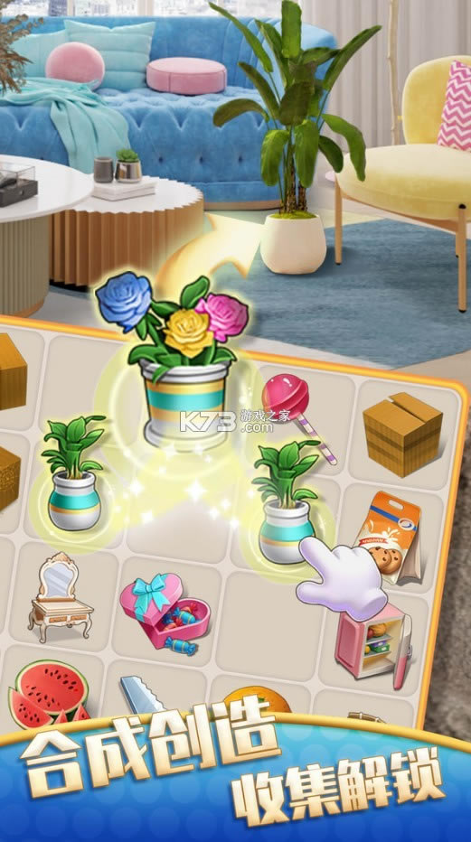1.容易上手:游戏玩法简单易懂,没有复杂的内容,拖拽合并收集物件,进行家居设计,帮助你爱上家装