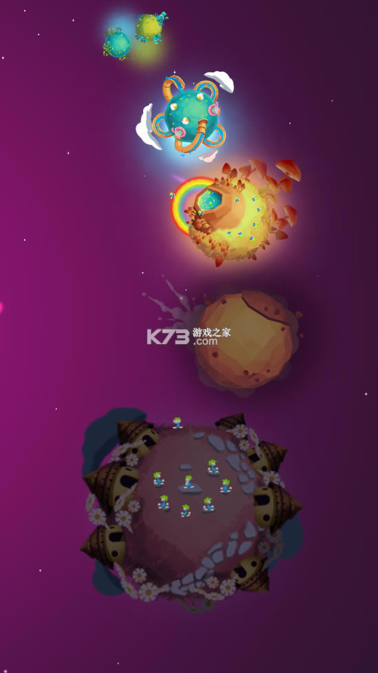 3、在宇宙中航行,为你的旅鼠打造可供狂欢的行星;