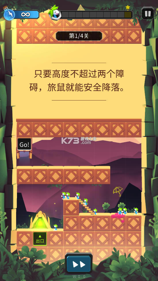 《旅鼠破解版》是一款非常有趣的闯关游戏,玩家将给旅鼠搭造各种道路让他们一路走到终点,游戏中很多关卡,越往后难度越高,喜欢的小伙伴快来下载体验吧!
