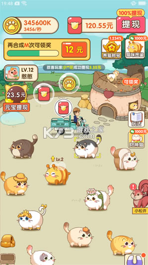 《幸福猫舍红包版》是一款画风非常清新治愈的趣味猫咪合成手游,游戏不仅为玩家们设计了打造了超多品种的可爱猫咪,而且玩家们还可以轻轻松松赚取到各种红包福利,满0.3元即可进行体验。