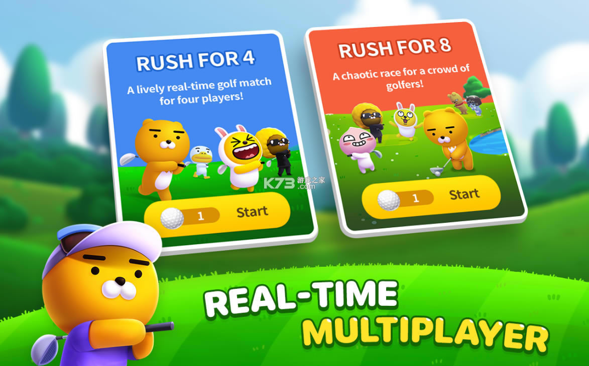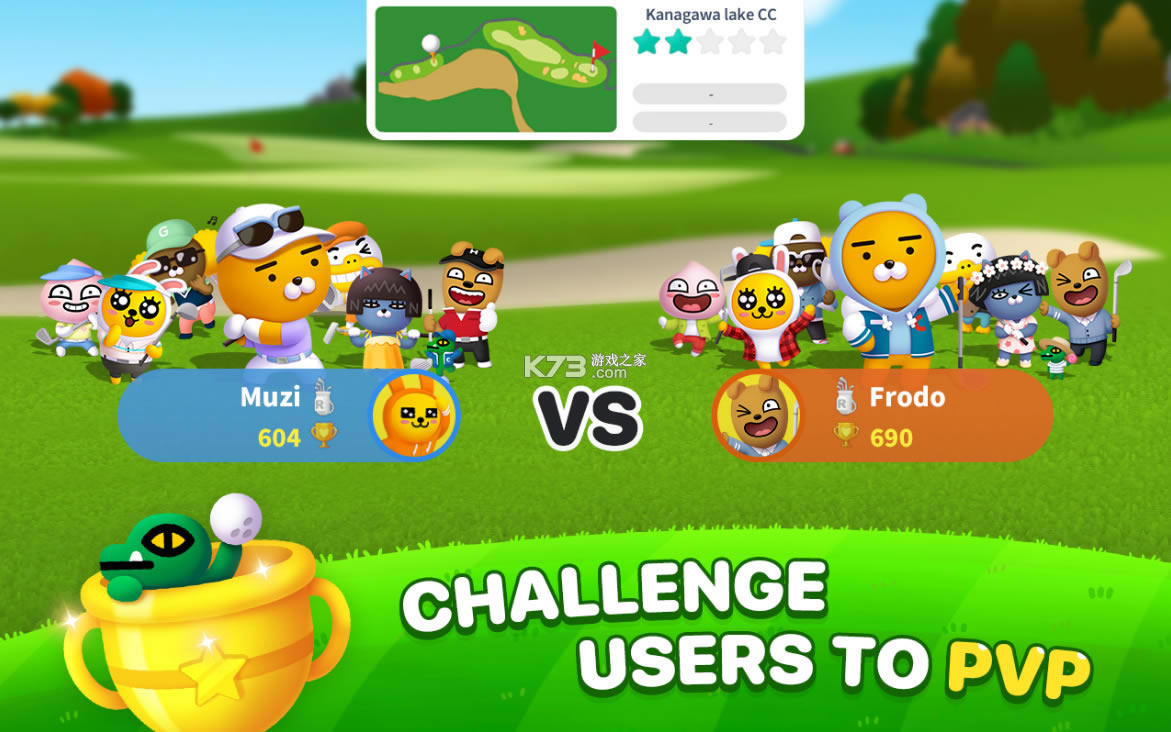 friends shot全民高尔夫游戏是一款休闲的高尔夫比赛游戏,能帮你在游戏中提供更多的休闲的玩法,与可爱的人物们进行比赛吧,看看你的高尔夫球打的怎么样,多个场景,玩法上就显得不同了,一起来看看吧!friends shot全民高尔夫是一个趣味性的挑战方式模拟游戏,建立自己的2265高尔夫球队,与可爱的kakao friends角色一起打高尔夫球!环游世界,与世界各地的球员一较高下!他们配备最新的高尔夫装备,为收集 kakao friends 角色,提升他们的技能并在1v1实时多人高尔夫比赛中挑战对手!