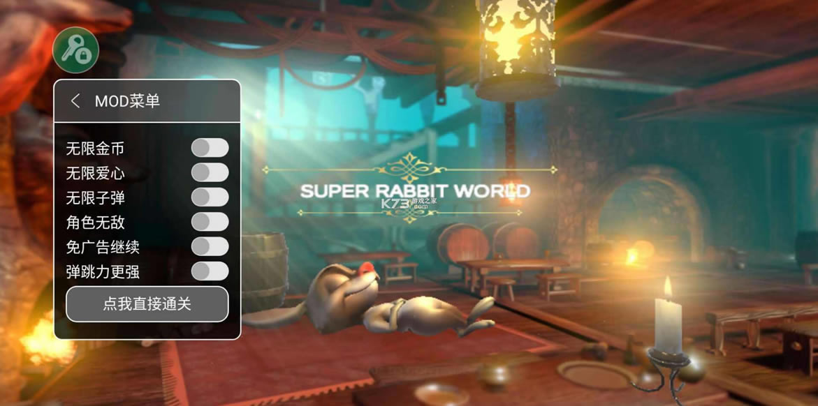 破解内容:辅助菜单: 无限金币、无限爱心、无限子弹、角色无敌、免广告继续、弹跳力更强、完成当前关卡!