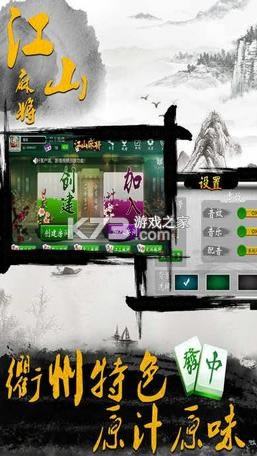 江山麻将等优质麻将游戏玩法的麻将集合软件,其内为浙江衢州用户们量身打造了最优质的游戏界面,最受用户们欢迎的麻将模式,在衢州当地受到了广泛的流传!