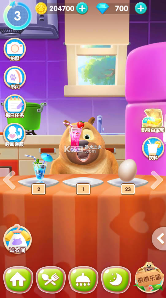 1、 成为了熊大熊二的主人,玩家要好好的照顾它们,这是一款全新的养成玩法