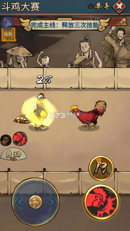 《疯狂的斗鸡场》是一款趣味游戏,玩家需要自己捕获斗鸡然后,用自己的斗鸡去参加比赛获得跟多的奖励,游戏玩法简单操作容易。喜欢的小伙伴。快来下载吧!