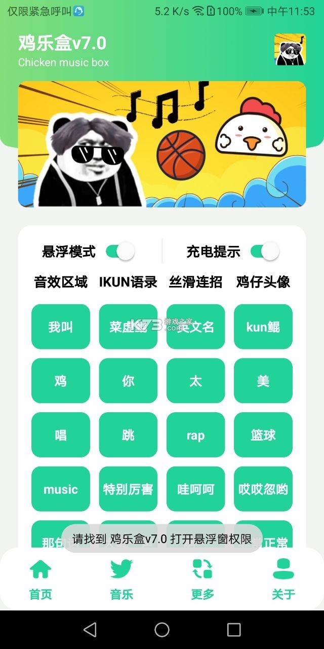 鸡乐盒7.0无广告最新版,是一款非常好用的一款音效软件,该软件中各种搞笑的音效都包含在其中,唱、跳、rap,等音效让你用不停,各种资源都是免费提供的,想成为两年半的个人练习生吗,使用这款软件你就是!
