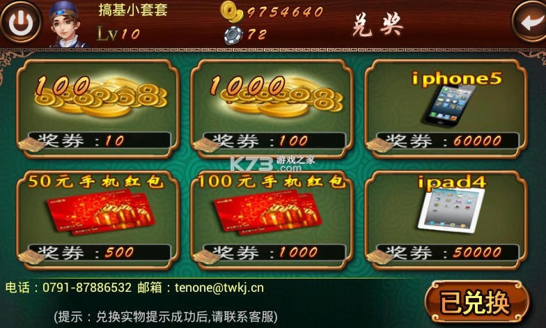 现有上线产品只有红中麻将,平江番还在开发当中,左上角有房卡剩余数量以及购买按键。右上角当每日房卡数清零的时候可以在福利界面领取房卡奖励。玩家可以通过战绩查询每天对战记录,玩家也可以通过反馈提供建议和意见。