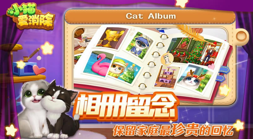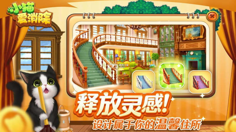 欢迎来到小猫爱消除! 在这里,挑战三消关卡就可以设计和装饰爷爷留给你的大宅邸,还可以和可爱的会说话的小猫聊天.还不够有趣? 别担心,照顾他们,打扮他们,和他们玩,有趣的时光超出你的想象!