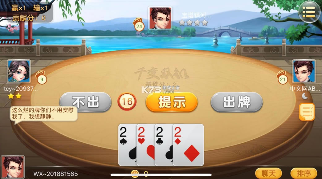 经典牌类游戏双扣,流行于浙江、温州特别风靡,