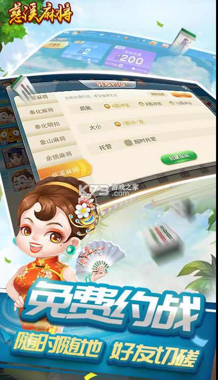 非常好玩的地方麻将,慈溪麻将的玩法非常多样,由4人参与,每人手里抓13张牌,通过碰牌、杠牌等方式,使手中的牌按照相关规定的牌型条件胡牌。