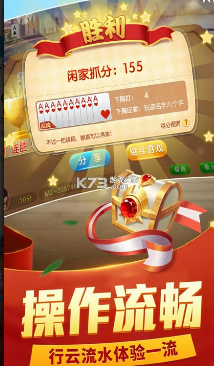 为各位呈现赤峰地方棋牌玩法,让各位玩家可以随时与全国各地的赤峰棋牌爱好者同场竞技,方言配音更加带感,超多竞技场模式满足不同人群的游玩需求,新手场、竞技场、王者场自由选择,还拥有排位玩法称号,一起提升自己的段位,成为真正的赤峰棋牌高手