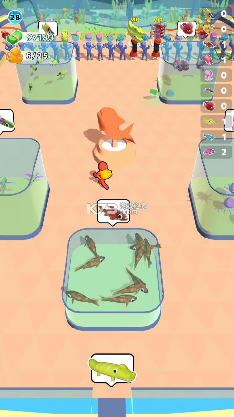 我的水族世界是一个梦想,是你的奋斗目标,在我的水族世界游戏中,亲自去抓鱼解锁各种海洋生物来放入你的水族馆,用更多的动物来吸引游客参观,还要雇佣人手来帮助你哦。