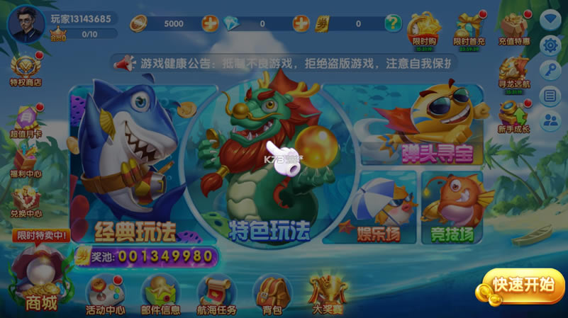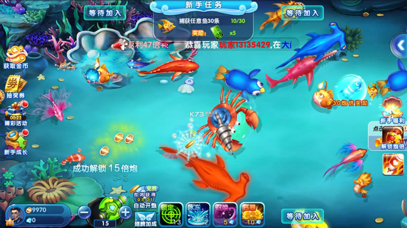 千万玩家真实在线,同台捕鱼热闹、激烈!火力全开海底激战,共同争夺海底财富!帅哥美女聊起来,双击666这游戏很赞!