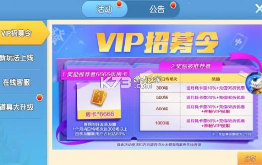 登录有机会抽奖。每天可以领取房卡,免费邀请好友进房。