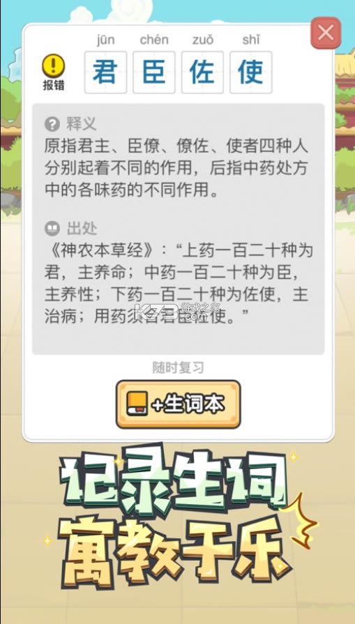 每个成语都会有详细的解释,并会告诉你这个成语的由来,让我们更容易理解