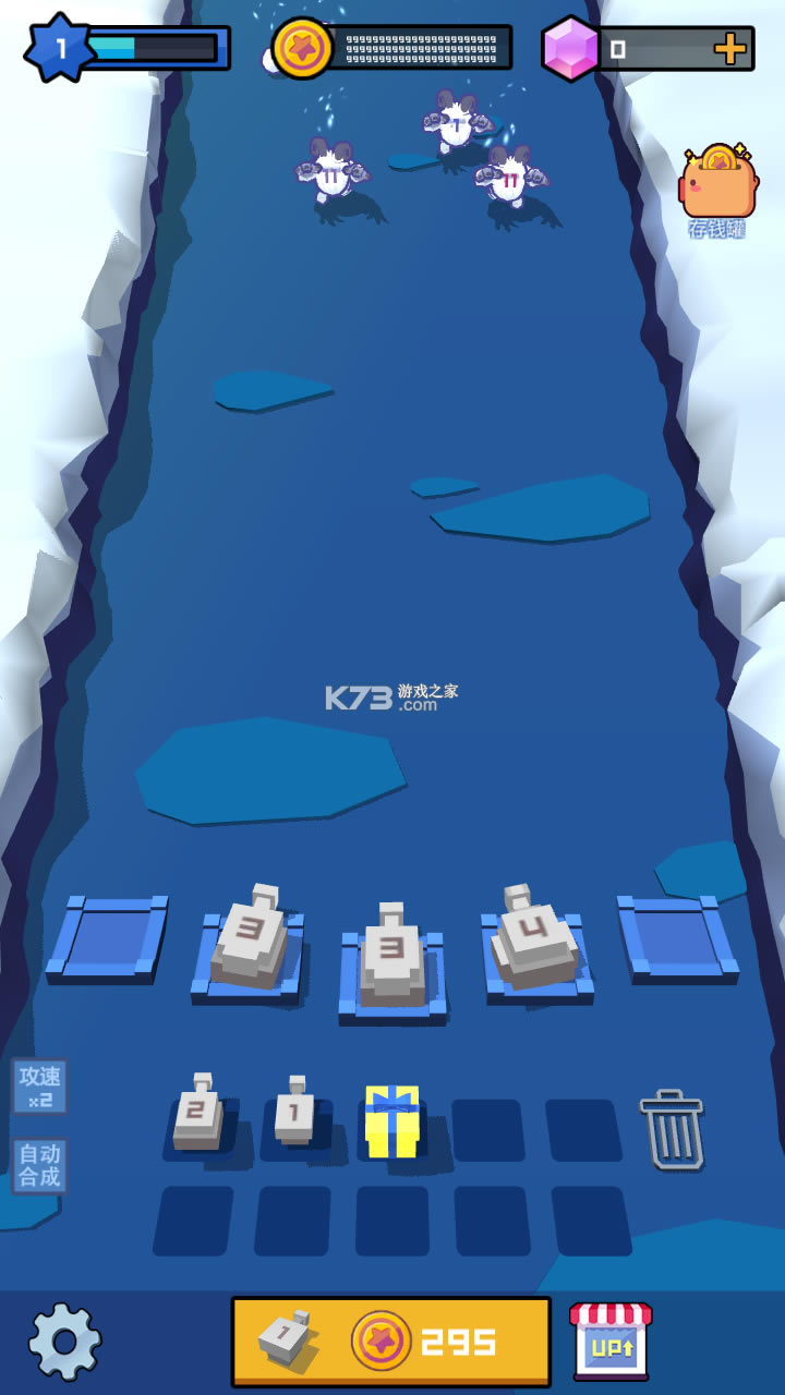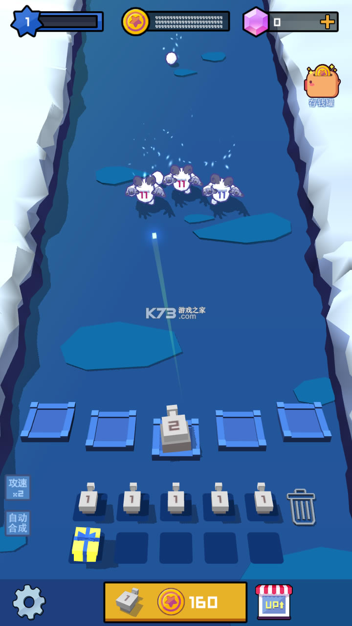 雪球来了3D是一款极简风格的的放置游戏,你可以通过合成来获得更强力的炮台,它们将为你抵挡雪球的进攻。