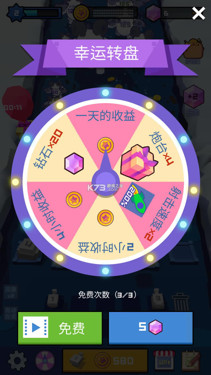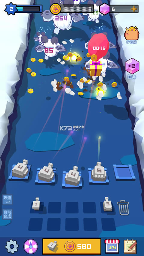 游戏有众多关卡,通过关卡可以收集炮台和金币,然后可以合成更加强大的武器;