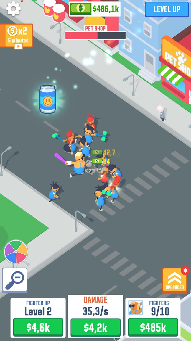 《Idle Gang》是款放置休闲类型的小游戏,玩家通过慢慢收集自己的队员,组成一支强大的队伍,去征服城市的每个角落,与其他的势力进行正面冲突,占领对方的基地,赢得这片城市的所有权。