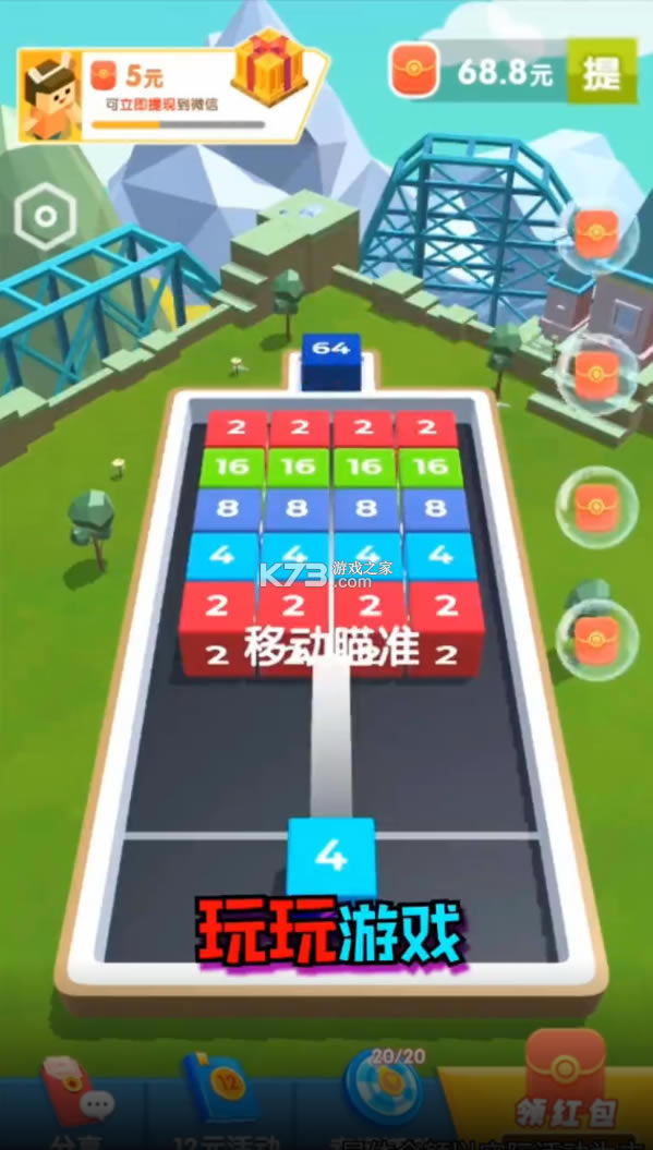 滚动方块红包版全新的2048消除玩法全新的益智闯关体验,发射数字方块,相同数字的方块将会合成数字更大的方块,当堆积的方块超过了指定线的时候我们的挑战就失败了。益智趣味的游戏内容适合所有玩家,更加重要的是奖励还非常多哦!