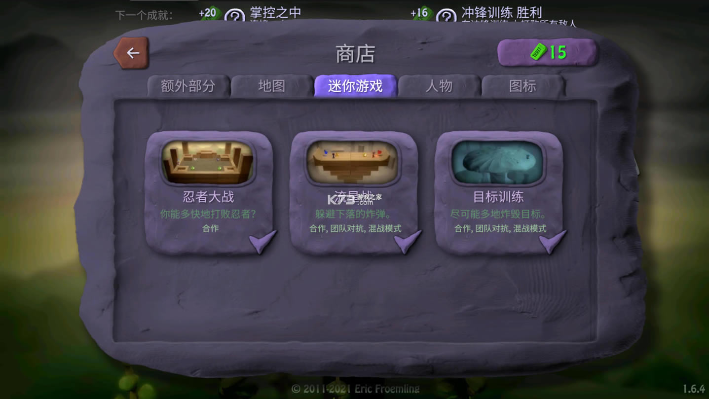 各种各样的好玩炸弹,有黏黏弹(会粘在敌人身上),触感弹(触地就爆炸),冰冻弹,还有地雷,让你一次玩个够;