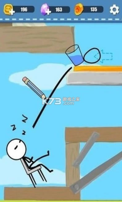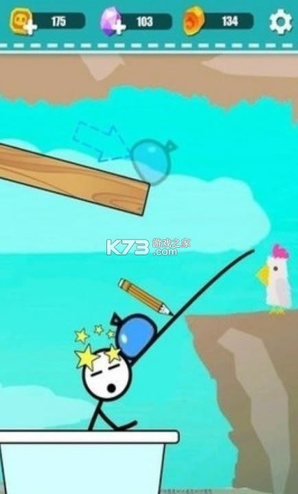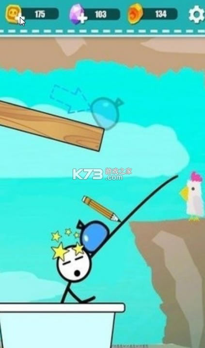 游戏玩家在合适的位置划上一笔把整蛊的道具落下砸到火柴人。