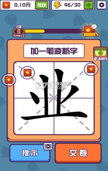 闯关的汉字玩法,不再是填成语了,而是变化笔画来填字了。