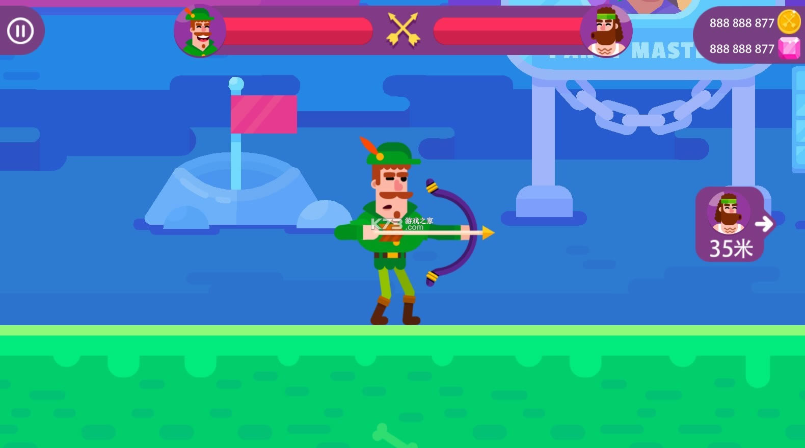 一款比赛射箭的游戏,在这款游戏中,你需要使用你的箭将对方射倒,才能进入下一关。控制你射箭的力度还有方向是玩这款游戏的关键。为了让喜欢这款游戏的小伙伴可以玩的更加开心,还有冷血射手的破解版本哦。