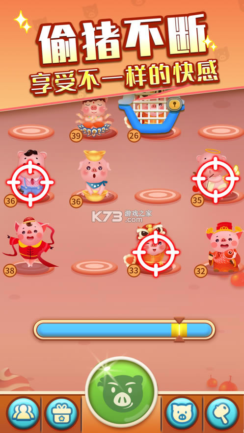 欢迎来到《全民偷猪》,在这里你可以与好友以及全国各地的玩家一起创造、升级、经营你自己的小小养猪场,你还可以在棋盘上投掷幸运之骰,抽取命运卡牌、去好友或陌生人家偷取你还未曾收集的小猪,将它们据为己有,合并猪猪并让它们为你创造收益!努力将你的养猪场升级、偷猪致富、走上人生巅峰吧!