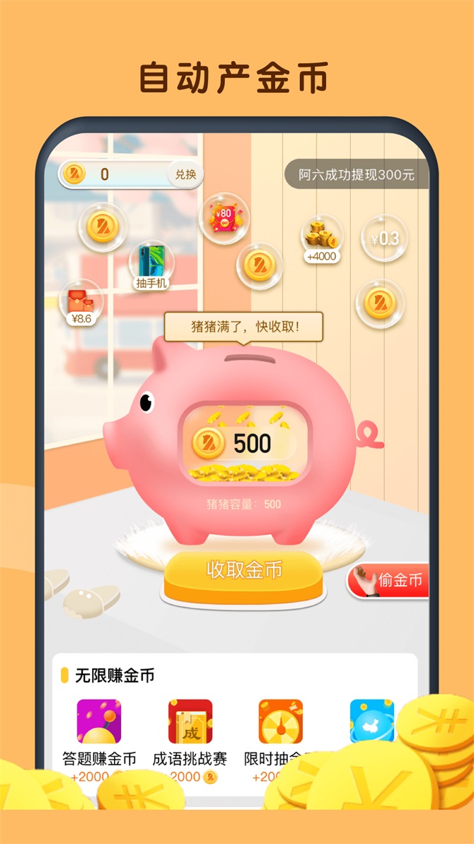 5、存钱罐,每天可以自动赚金币;