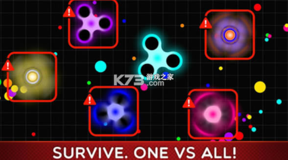 趣味多多快来体验。玩家控制指尖陀螺在霓虹空间宇宙中遨游,收集色彩小点可以增加指尖陀螺的各种属性。 通过对撞可以消灭其他指尖陀螺,同时也有可能被更为强大的指尖陀螺消灭。较好的战斗策略是避开强者,选择较小的进行攻击,