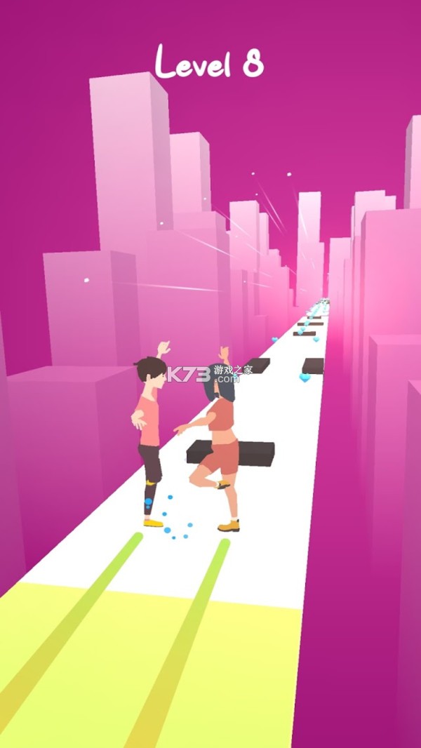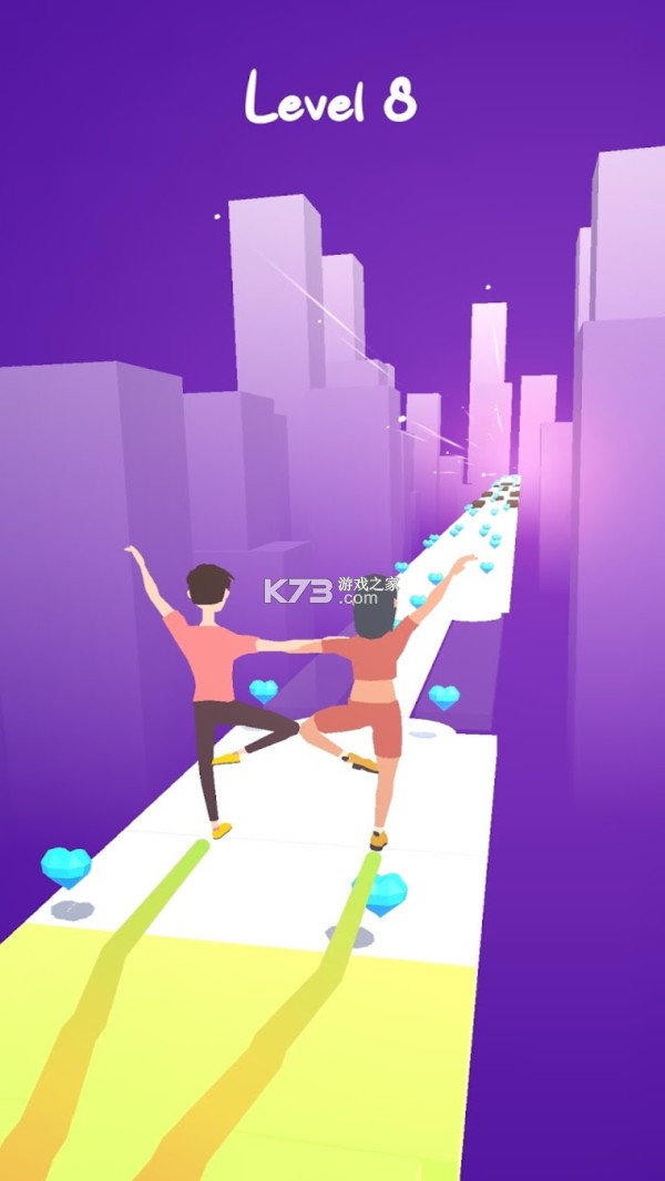 双人跳舞游戏是一款有趣的跑酷闯关游戏。一边跳舞一边跑酷带给玩家全新的游戏体验,我们需要控制两名舞者在赛道上左右移动避开障碍物,当然,收集钻石也是我们非常重要的任务,可以用来解锁使用各种不同风格的皮肤,让我们的跑酷过程更加赏心悦目。