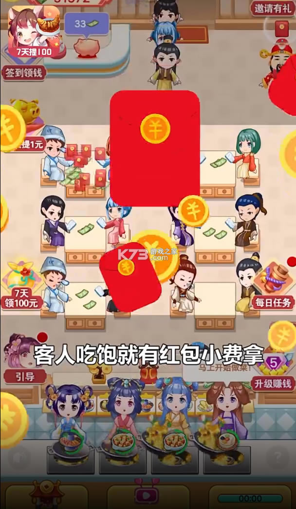 《我家餐厅红包版》是一款超级火爆的模拟经营红包游戏,游戏中玩家将扮演一名参观的老板,玩家可以招募各种能力强大的美女厨娘帮助自己招揽客人,客人只要吃饱就能获得丰厚的现金红包奖励,轻轻松松就能赚取零花钱。