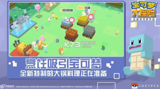 采集食材、烹饪美味料理,可爱的方形宝可梦们就会被吸引而来。烹饪全新大锅料理,一次吸引更多宝可梦!