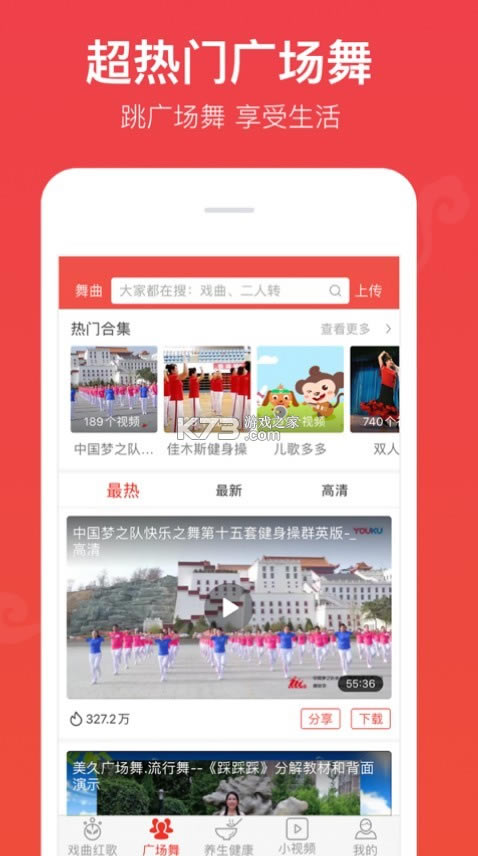 《戏曲多多旧版本》是一款超多人热爱的戏曲舞蹈软件了,里面有着超全的戏曲欣赏,想要找戏曲就来这里了,而且还有着广场舞的分类模块,也支持快速学习广场舞,更多养生健康知识也可以在本app里面查看了。