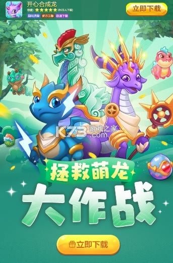 《开心合成龙》是一款萌龙作战的手机游戏,萌龙和消除玩法结合的游戏方式,可以通过萌龙合成拯救不开心的内容,还有各种不同的龙蛋可以解锁,合成更多的龙吧。体验非常有乐趣的游戏。