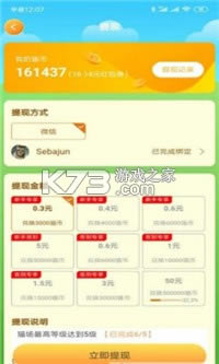 猫咪每次升级都有红包,不卡阶段不卡提现金额,一元可以反复提现无任何限制!