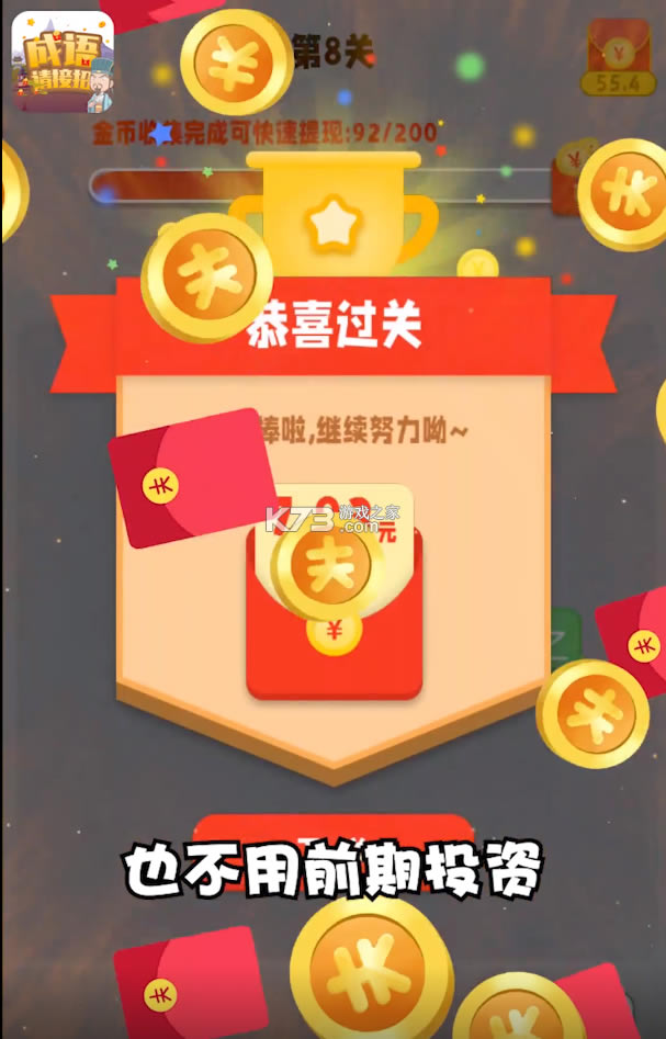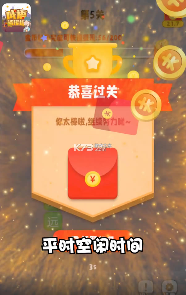 2、每次成功通关就能领取惊喜奖励,还有详细的成语小课堂,补充你的词库;