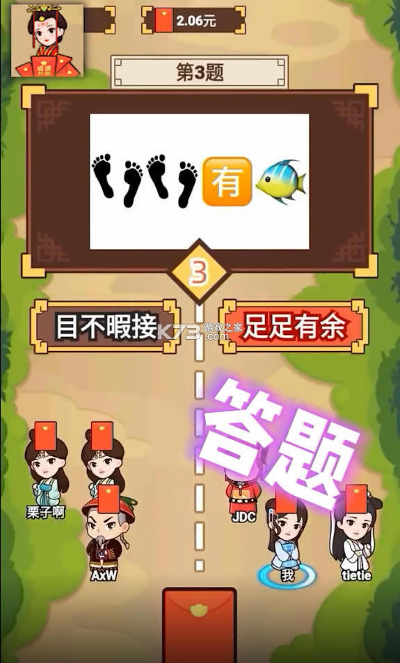 一款能够带给玩家欢乐答题挑战的休闲游戏,多趣的猜题模式可以给玩家带来精彩的游戏体验,更有不断开启的红包挑战赛等待着你参与其中,只有完成挑战的玩家才能够获得丰厚奖励,各种挑战玩法都会在这个游戏之中给玩家带来。