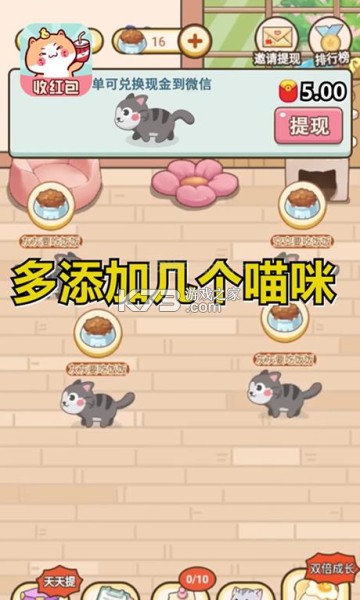 4.在猫咪升级的过程中会获得红包奖励,红包累积到一定金额即可直接提现。