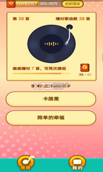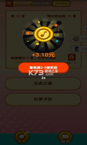 《全民猜猜歌包版》一款非常受欢迎的全民猜歌赚钱游戏,玩家只需要猜对歌名就可以领取现金红包奖励,每一个关卡都有不同的歌曲,规定的时间内猜对即可,全新的猜歌赚钱之旅等你来挑战。