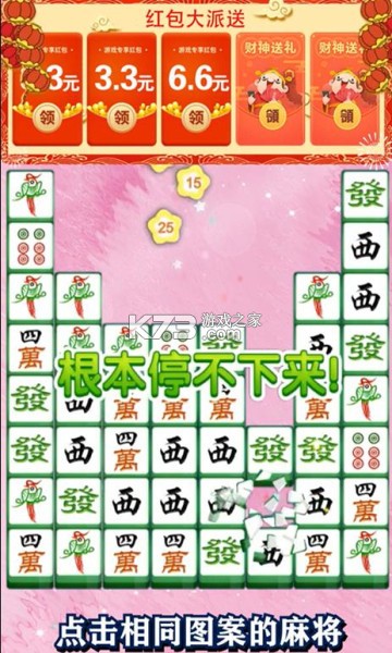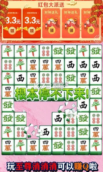 一款最近非常火热的消消乐游戏,这款消消乐完全免费,在这里玩家将体验麻将元素和消消乐玩法相结合的产物,保证是你没玩过的消除玩法,游戏从易到难一步一步深入,玩家在这里可以一边体验一边赚钱,超多红包分红等着你来领取。