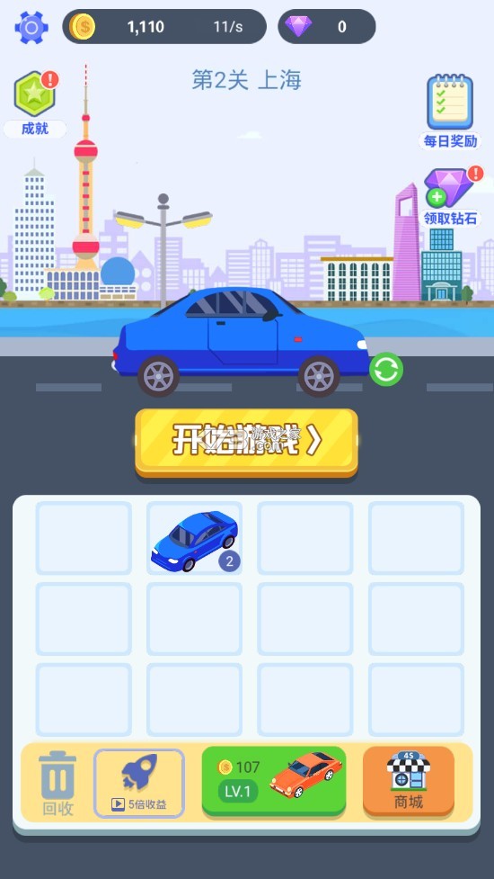 6、只需要不断的升级车,等到有两辆车的等级达到37级的时候,我们就可以合成分红车了。