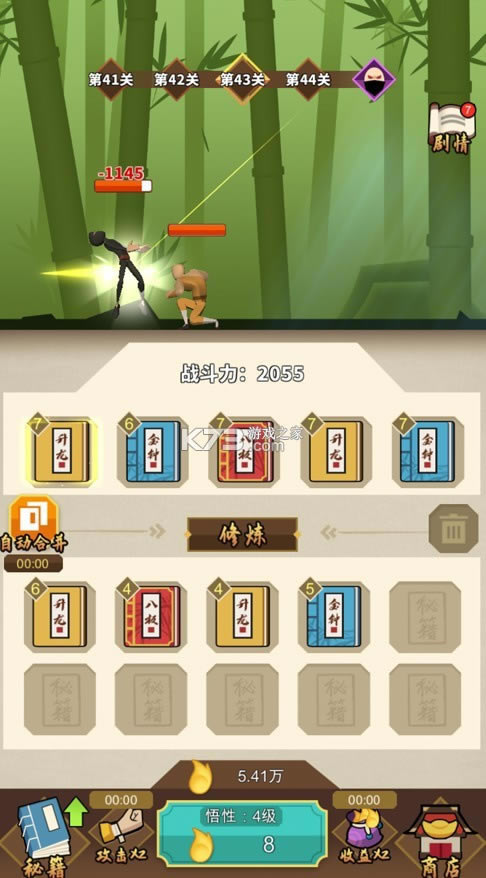 一款以武侠为题材的轻松休闲的挂机游戏。通过简单的合成操作即可击败敌人,获得更多武功和装备。